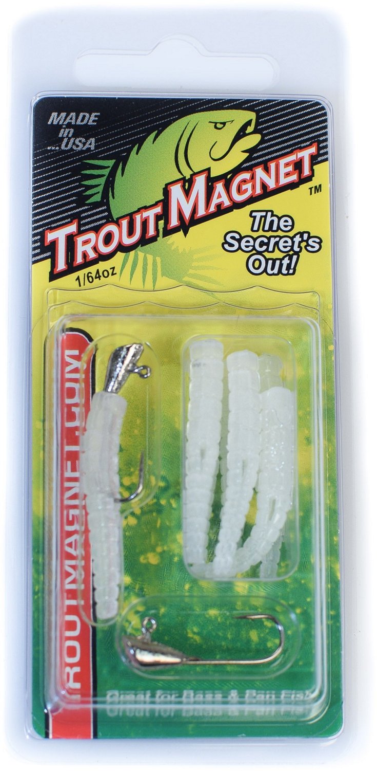 Draw the attention of trout and more with the naturally flowing movement of the Leland Lures Trout Magnet Bait. The shad dart head and split-tail grub design offer a horizontal falling action. Weighs .016 oz.