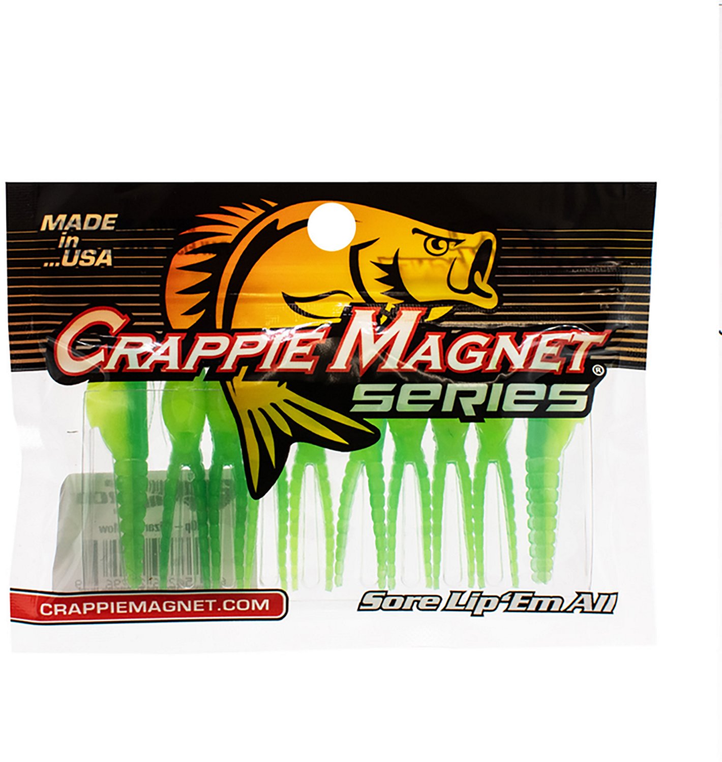 Have a successful day on the lake with the Leland’s Lures Crappie Magnet Roo 10-Pack. Each bait features a micro-shad body and split-tail construction that creates a quivering tail action that continually vibrates, and the scent-holding stomach pouch keeps space for additional attractants.