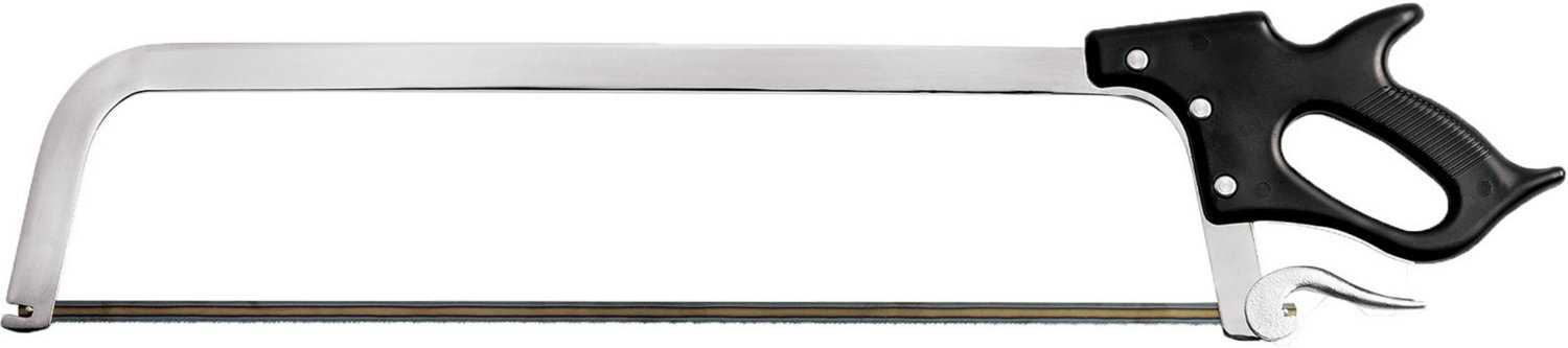 Prep your latest meal with the LEM 25 in Meat Hand Saw. Constructed with a durable heavy nickel-plated frame, this hand saw lets you cut through tough meat with ease, while the large blade-tightening lever allows for quick and easy blade swapping.