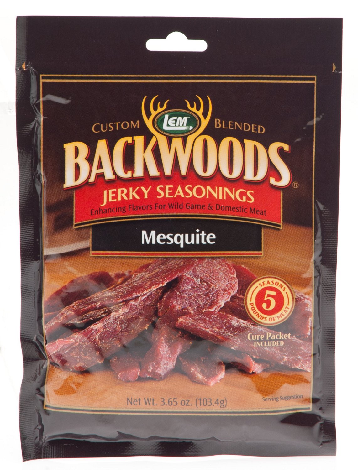 Add flavor to your jerky with the LEM Backwoods Mesquite Jerky Seasoning. With its distinct mesquite flavor, this seasoning can be used on up to 5 pounds of meat.