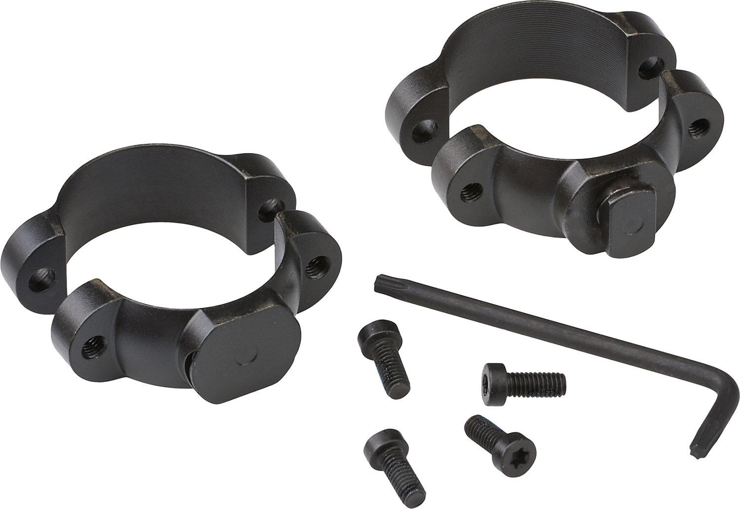 Designed to match up with STD 1-piece or STD 2-piece bases, the Leupold STD 30 mm Medium Mounting Ring System fits most rifle models. The rear ring is secured by windage adjustment screws, and both rings are made from forged and machined steel. 0.77"H.