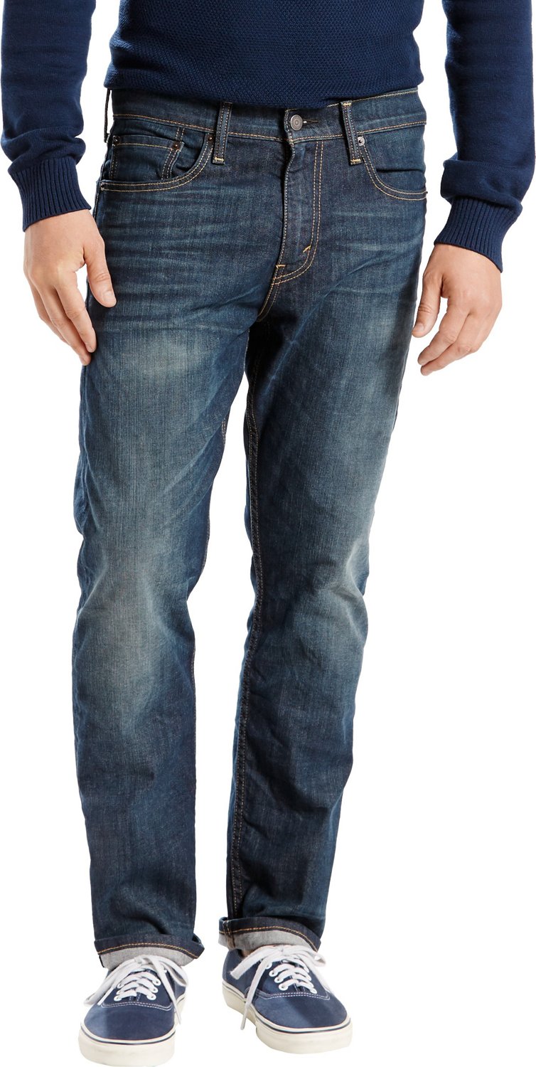 Elevate your casual look with the Levi's Men's 502 Regular 5-Pocket Taper Fit Jeans, which offer a sleek, modern style made of stretch twill for comfort. Crafted with ample room in the thighs and tapered legs, these jeans feature a 5-pocket design that sits below the waist with a zipper fly and a button closure.