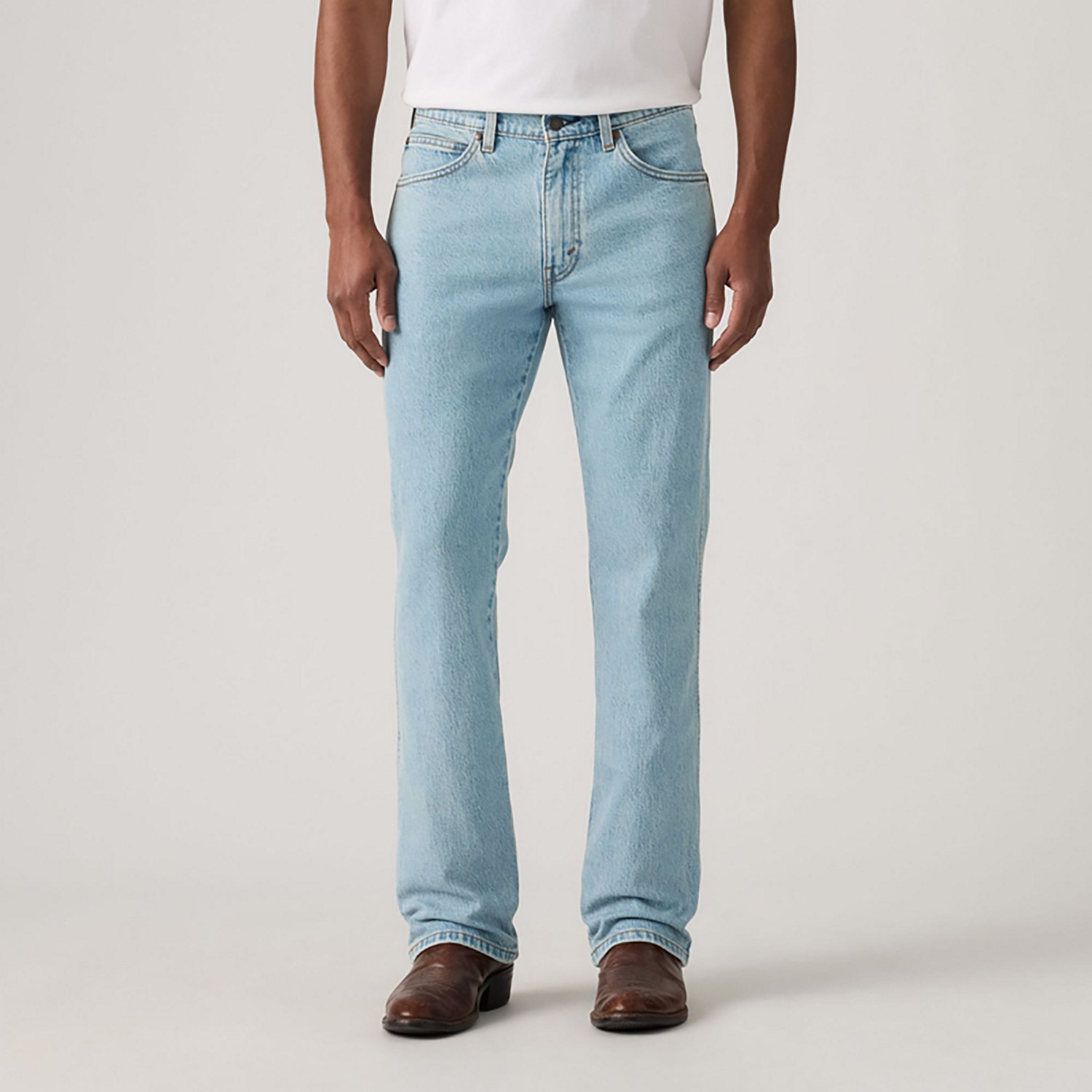 Get going with the Levi's Men's 537 Western Bootcut Jeans. The cotton and LYCRA material provides a comfortable feel, while the high-rise waist offers coverage. The wider leg opening easily fits over your boots and the stretch fabric offers a regular, all-day fit that'll make these jeans your new go-to pair.