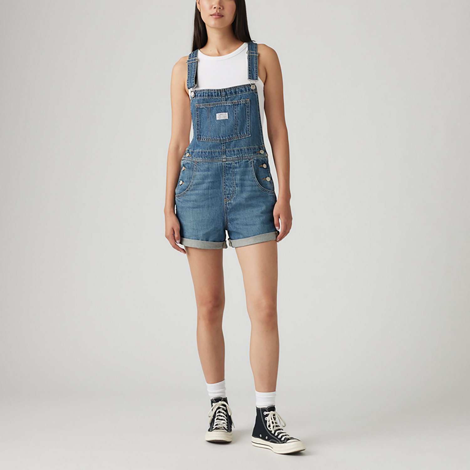 Wear a classic look with the Levi's Women's Vintage Shortalls. The cotton material provides a comfortable feel, while the adjustable straps offer a custom fit.