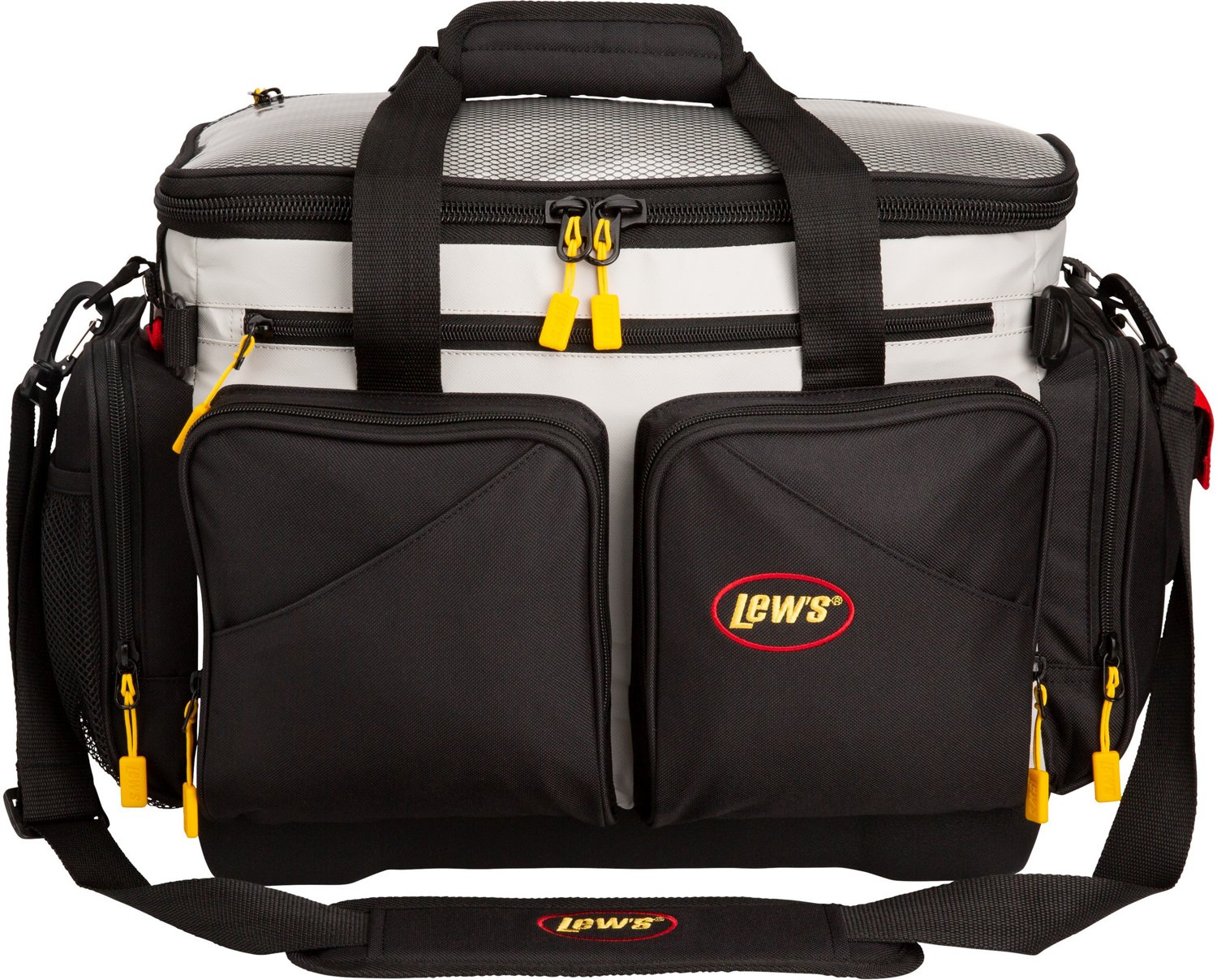 Take your fishing equipment on the go with a Lew's Custom Pro Tackle Bag. This sturdy bag fits 2 standard utility boxes and features a pliers holster, line dispenser and quick-stash front pockets for easy access to the essentials. The shoulder strap features plush padding and airmesh for comfortable carry.
