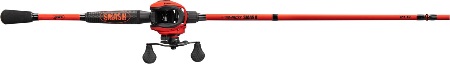 Get ready for your next fishing trip with the Lew's Mach Smash SLP 6 ft 10 in MH Baitcast Combo. The IM6 high modulus graphite blank withstands repeated use, while the Super Low Profile frame is lightweight. The Winn® Dri-Tac grip with EVA butt helps give you control when reeling, and 8 bearings help with stability.