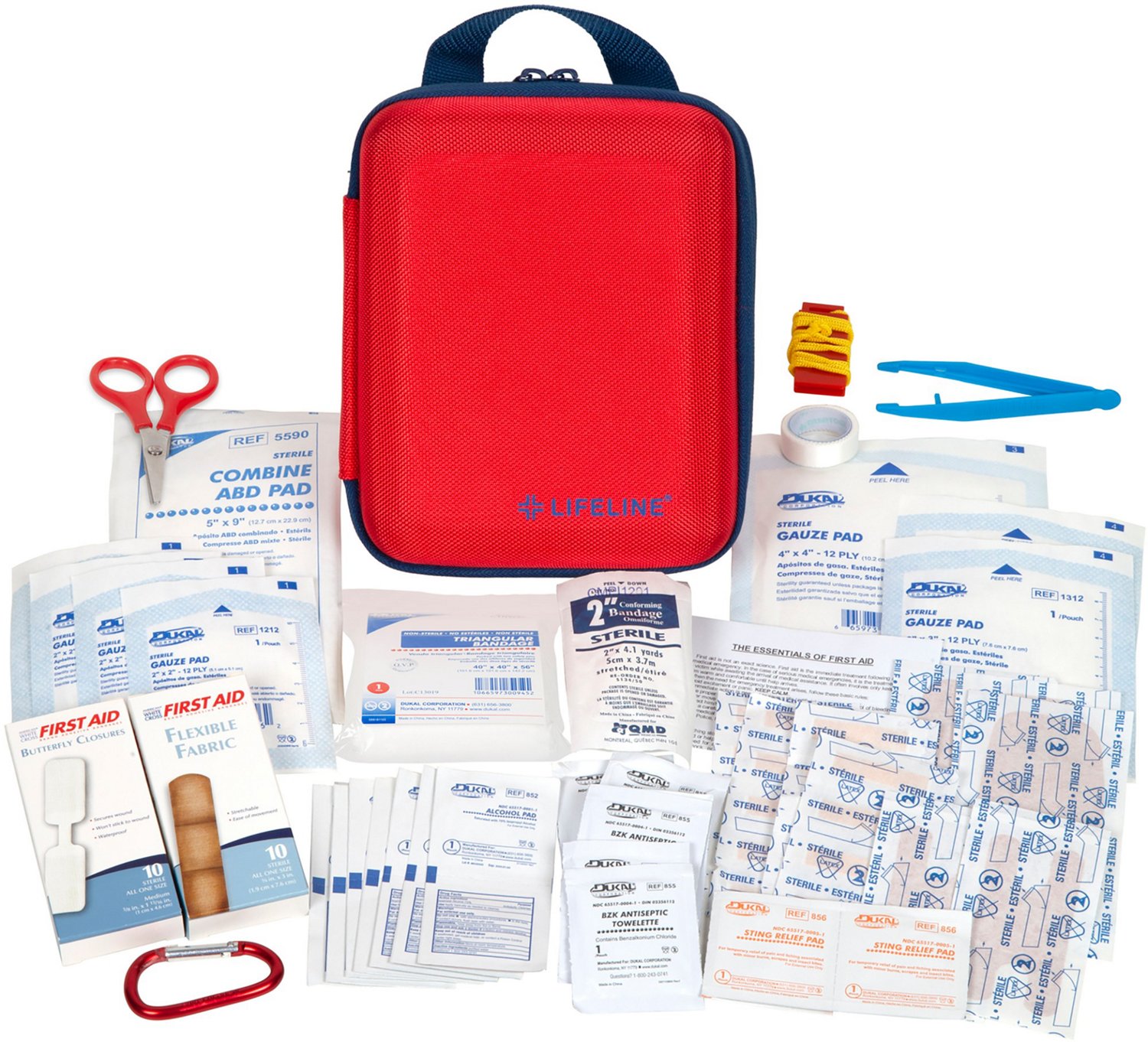 Enjoy peace of mind on the road with the Lifeline Large Hard Shell First Aid Kit 85-Piece. This kit has everything you need for handling road emergencies, including a bandages, gauze and a first aid guide. The contents are housed in a hard-shell case for safe traveling.
