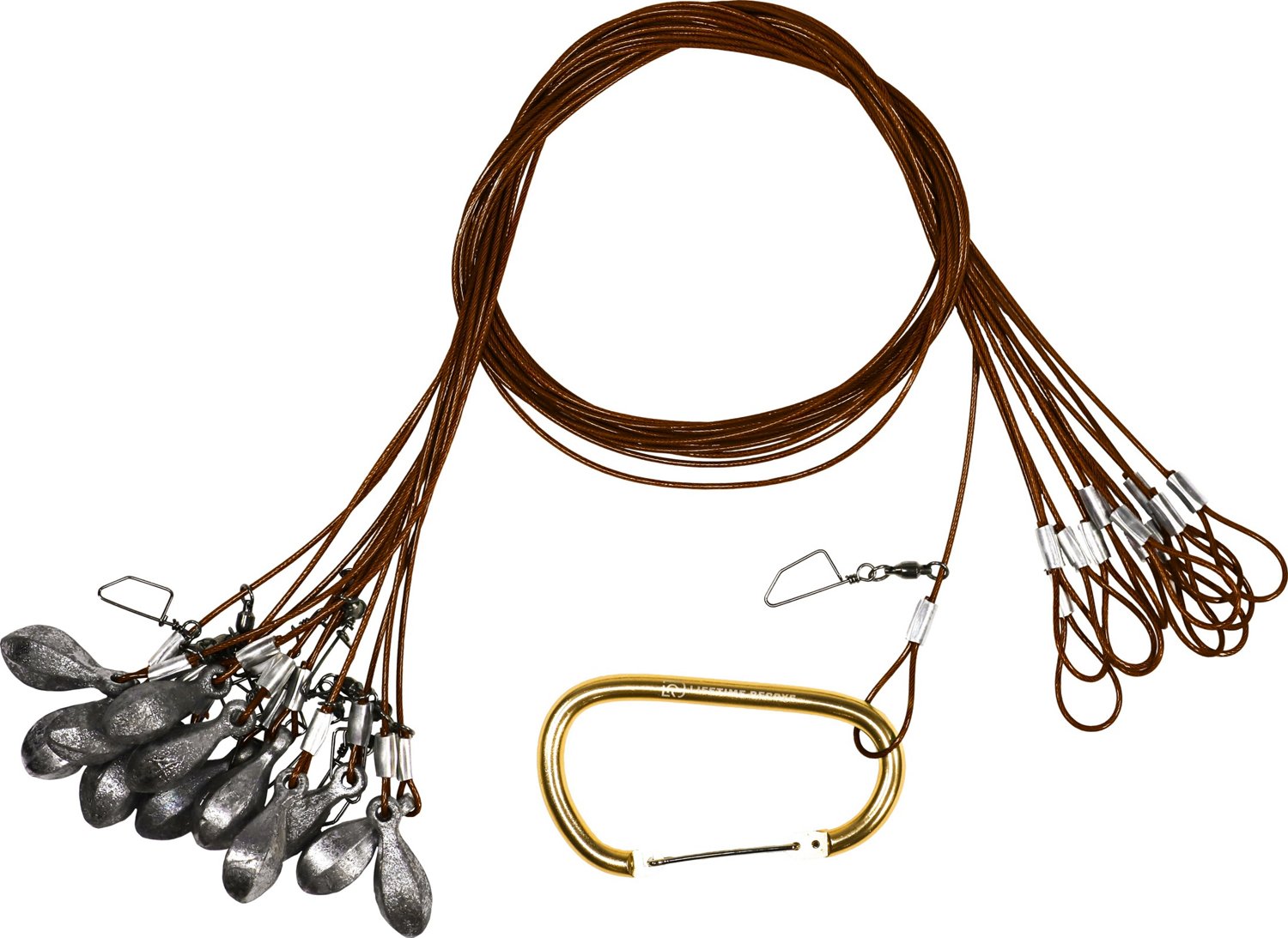 Secure floating decoys with the Lifetime 4ft 4oz Texas Rig. Made from PVC-coated steel, cable is ultra-durable and resistant to rust, cold, memory and tangles. DryHand carabiner loops and HoldFast clips allow quick and easy setup while NeverLoop crimps ensure a tight hold. The included mesh bag offers quick-drying storage between seasons.