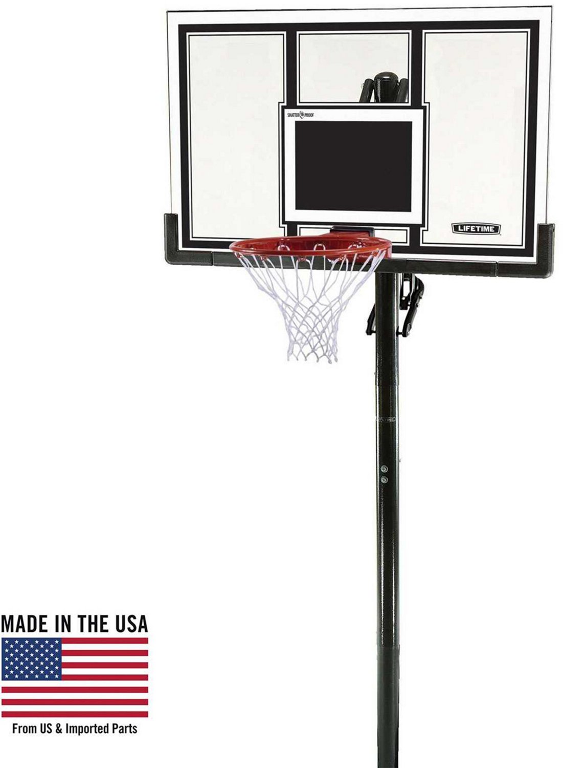 Bring the game of basketball to your home with the Lifetime 54 in Inground Basketball Hoop. An in-ground base gives this hoop the highest level of stability and security available. Enjoy the high-impact durability and excellent playing response of the 54-Inch Steel-Framed Shatterproof Backboard, made of virtually indestructible polycarbonate. Play with the intensity of your choice on the Slam-It Pro Rim, designed with pro-style flex action. The intuitive Power Lift adjustment mechanism lets you effortlessly set the hoop to any height between 7.5 and 10 feet (regulation), so kids and adults can play together or on their own! A powder-coated round steel pole and all-weather net will ensure the longest-lasting performance with the least maintenance, so you and your friends and family can focus on making the memories you cherish playing the game you love. Whether you’re a beginning player, an experienced baller, or the parent of a developing star, the Lifetime Adjustable In-Ground Basketball Hoop is the ultimate way to bring the game to your home.