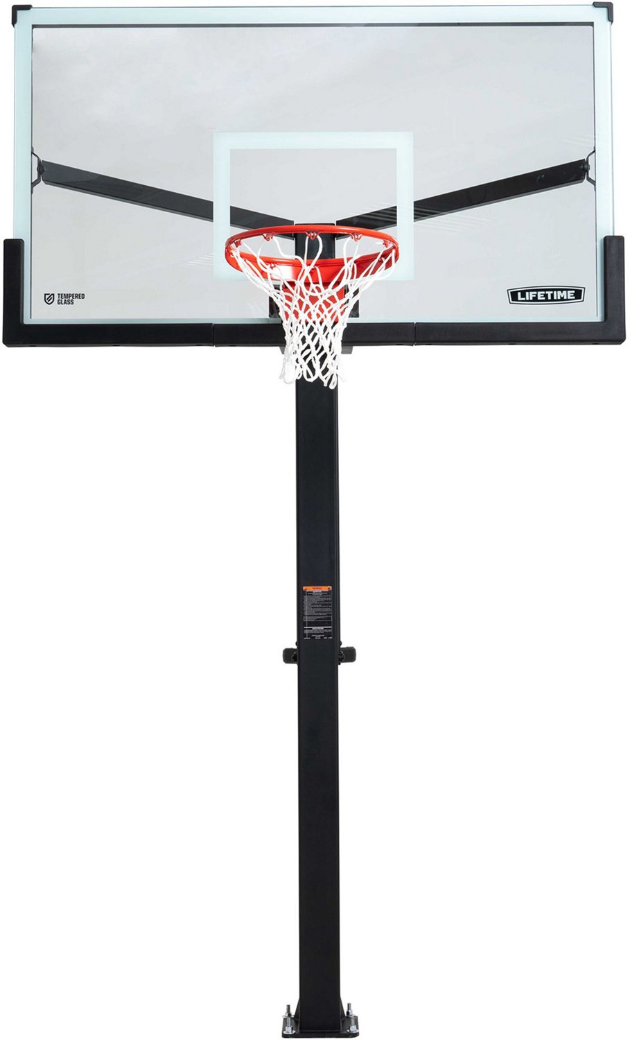 Bring the arena to your home with the Lifetime Mammoth Bolt Down 72 in Glass Basketball Hoop. The regulation-size tempered glass backboard offers performance and rebound. The Mammoth Lift adjustment mechanism gives you easy control over the height of your hoop in a simple motion and adjusts from 7.5 feet to 10 feet. The system is built to last with its heavy-duty build, weather-resistant coating and UV-protected graphics.