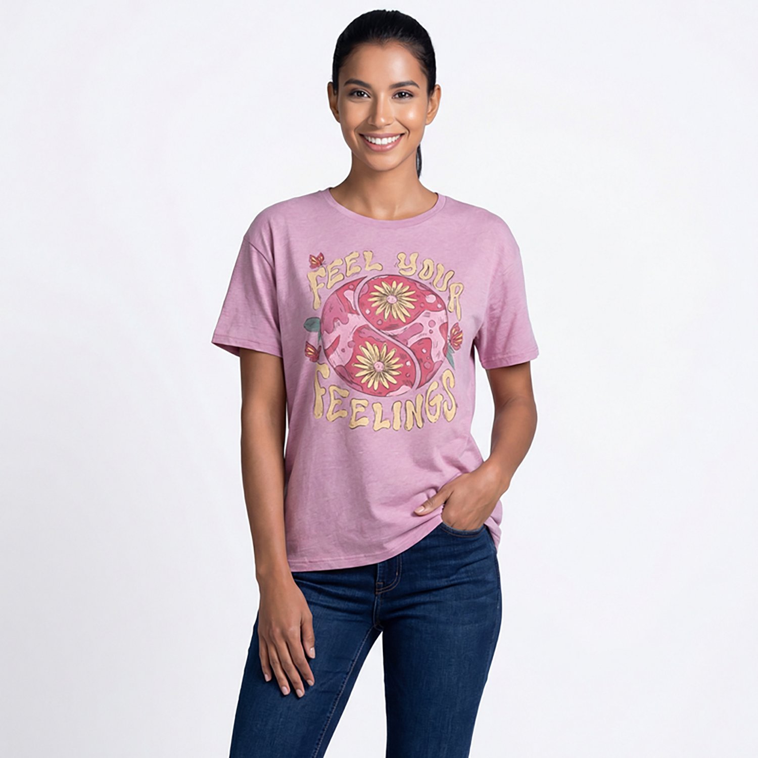 Express yourself with the Live Outside the Limits Women's Feel Your Feelings Oversized Graphic T-shirt. The cotton and polyester jersey fabric provides a comfortable feel, while the screen-printed design offers a stylish look.