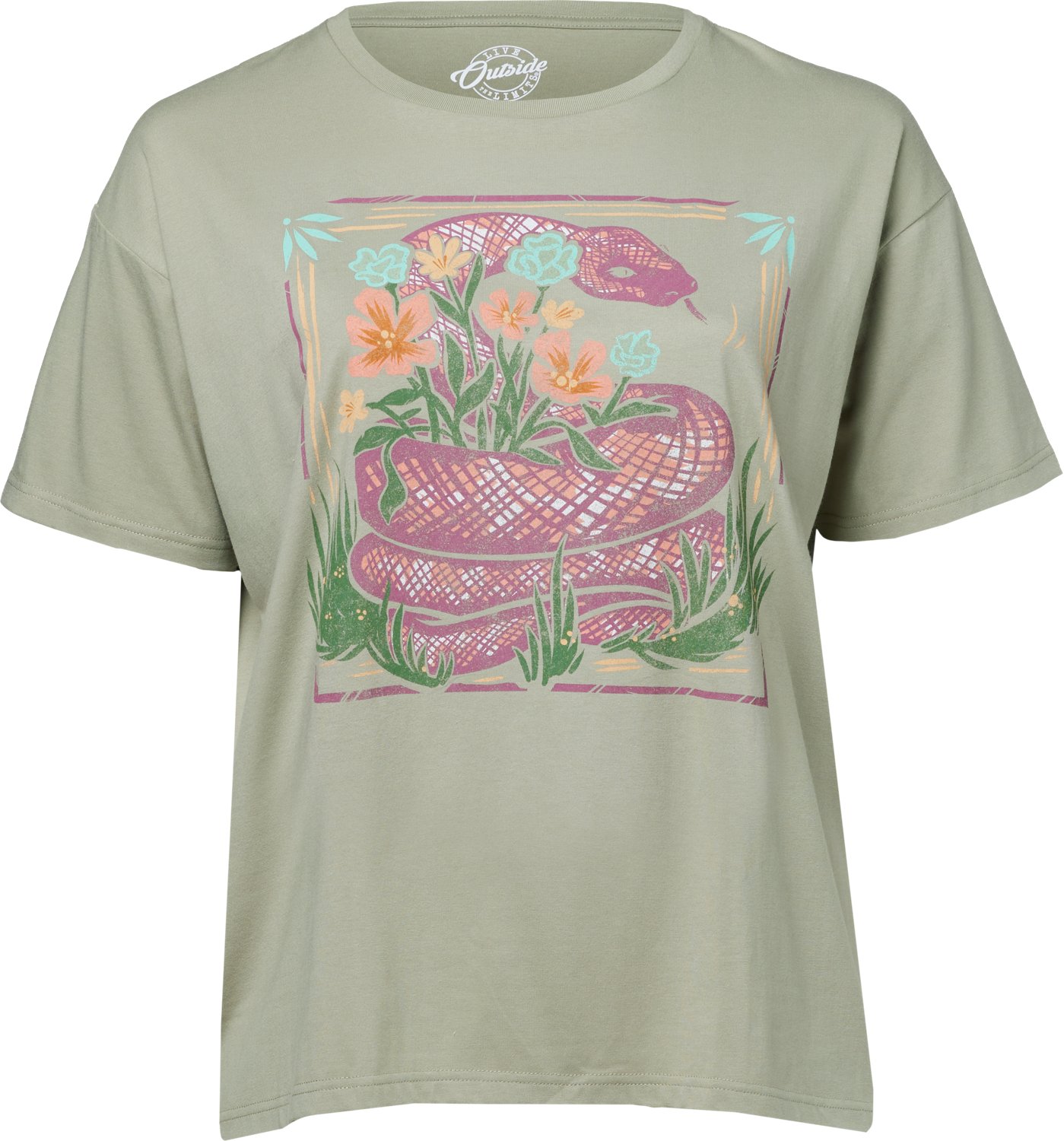 Live Outside the Limits Women's Floral Snake Oversized Graphic T-shirt