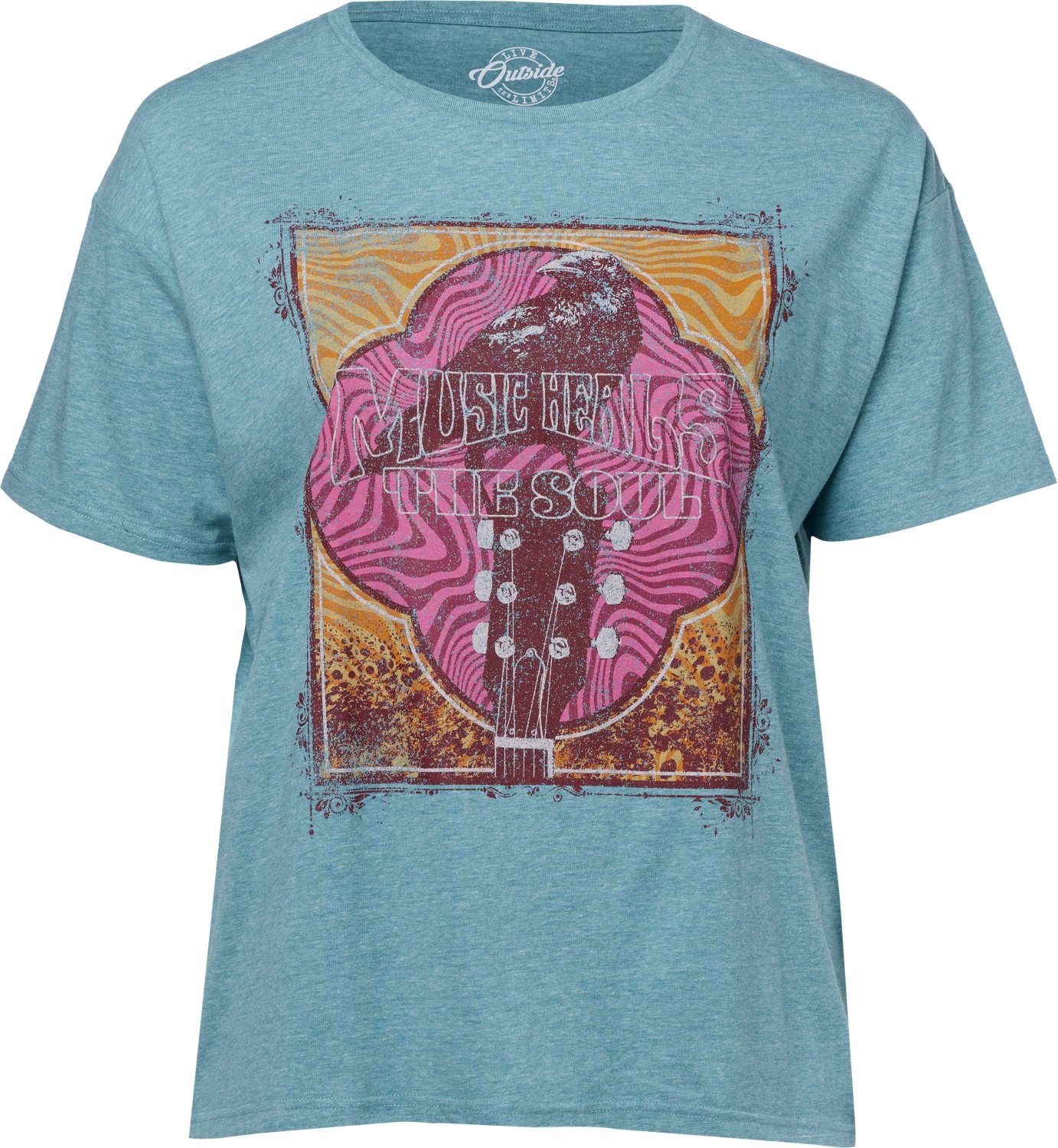 Put your stylish side on display when you wear the Live Outside the Limits Women's Music Heals The Soul T-shirt. The cotton and polyester blend helps keep you comfortable throughout the day, and the graphic design delivers an eye-catching appearance.