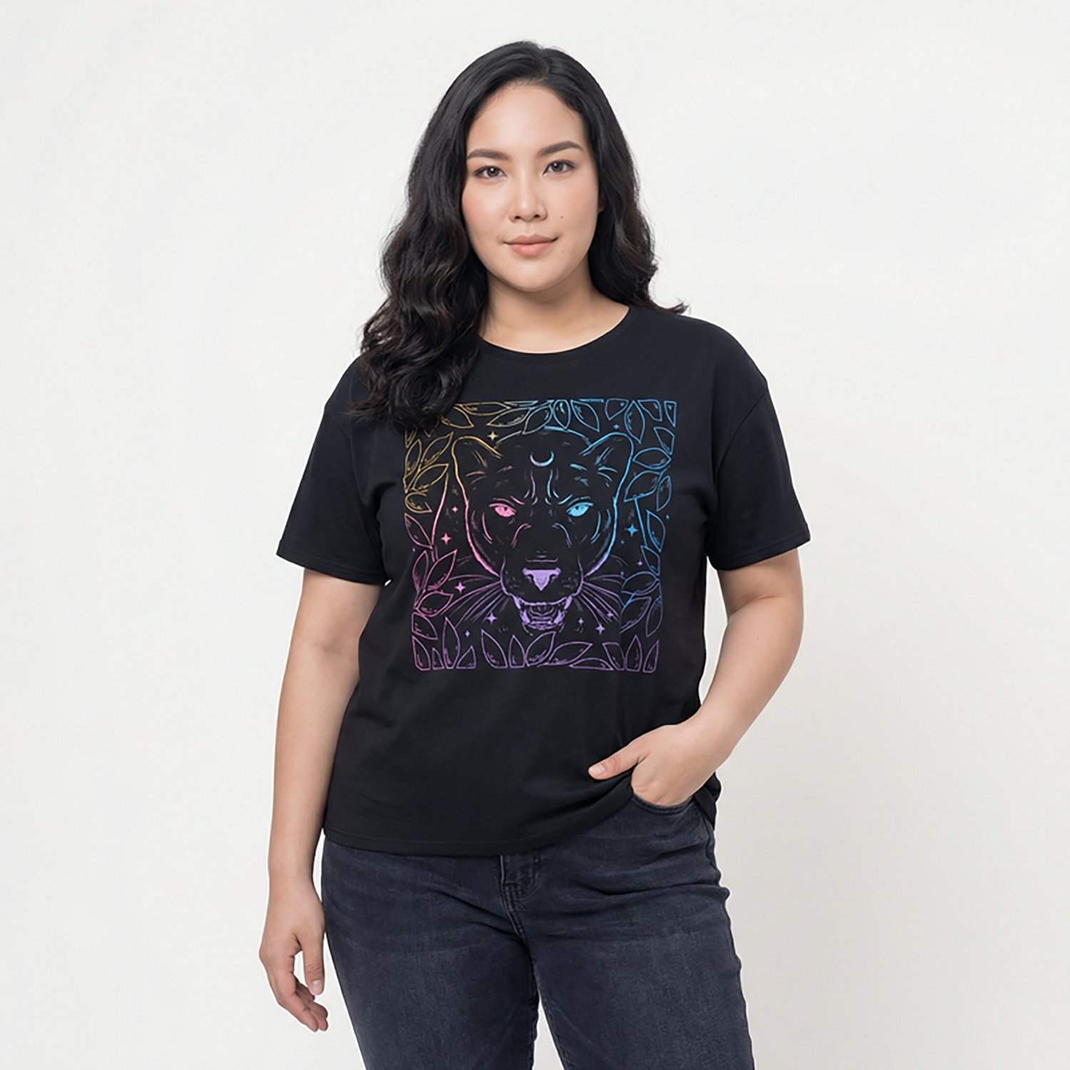 Express yourself with the Live Outside the Limits Women's Panther Oversized Graphic T-shirt. The cotton and polyester jersey fabric provides a comfortable feel, while the screen-printed design offers a stylish look.