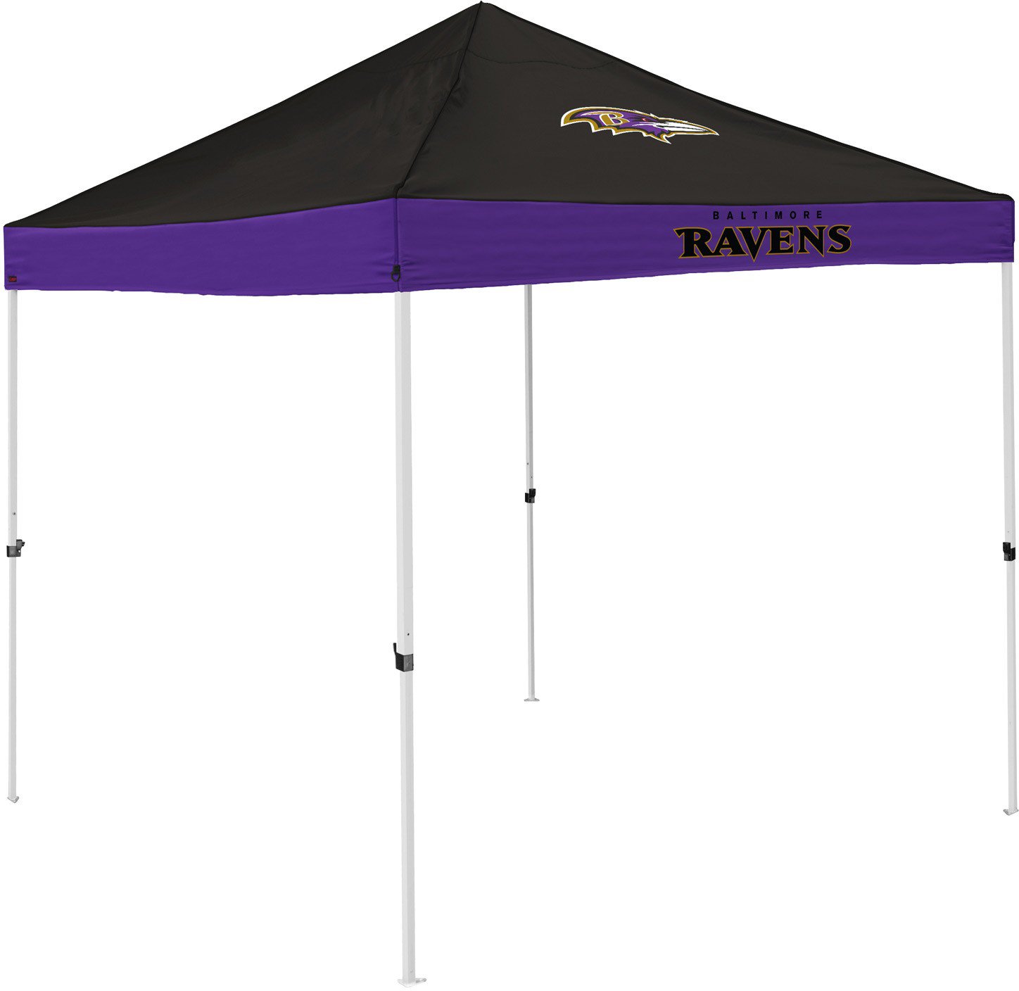 Set up the Logo Baltimore Ravens Economy Canopy at your next tailgate and enjoy 81 square feet of coverage. This canopy boasts a durable steel frame and a water-resistant cover for ample protection in the elements, and the team logo shows everyone what team you're rooting for. Find more NFL merchandise at Academy.com.