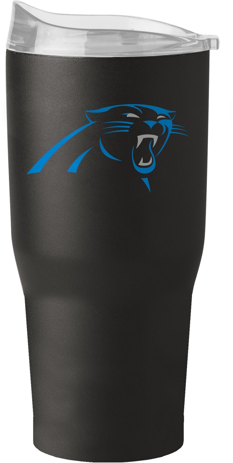 Enjoy a delicious game day beverage in the Logo Brands Carolina Panthers 30oz Flipside Powder Coat Tumbler. The stainless steel walls are vacuum sealed for insulation and protected by a powder coat finish. A high lip slider lid helps prevent spills while team graphics celebrate your favorite pro team.
