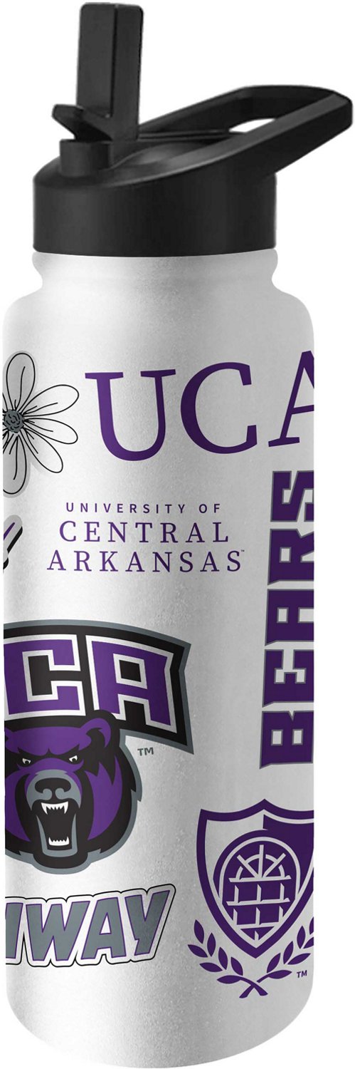 Make it clear that you're a true fan when you sip your drink from the Logo Brands Central Arkansas 34 oz Native Quencher Bottle. The high-quality stainless steel with a powder-coat exterior offers durability, while the double-wall construction with vacuum insulation helps keep your drink cold.