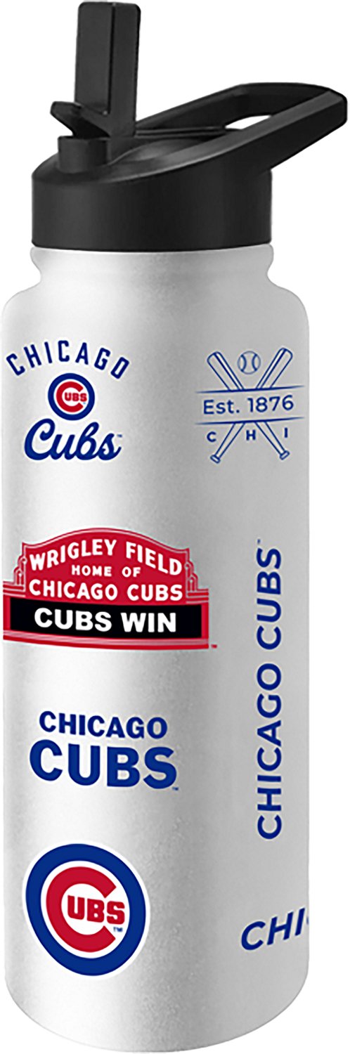 Quench your game day thirst with the Logo Brands Chicago Cubs Heritage Threds 34 oz Quencher Bottle. This bottle has a 34 ounce capacity, and it features a team logo that shows off your Cubs pride.