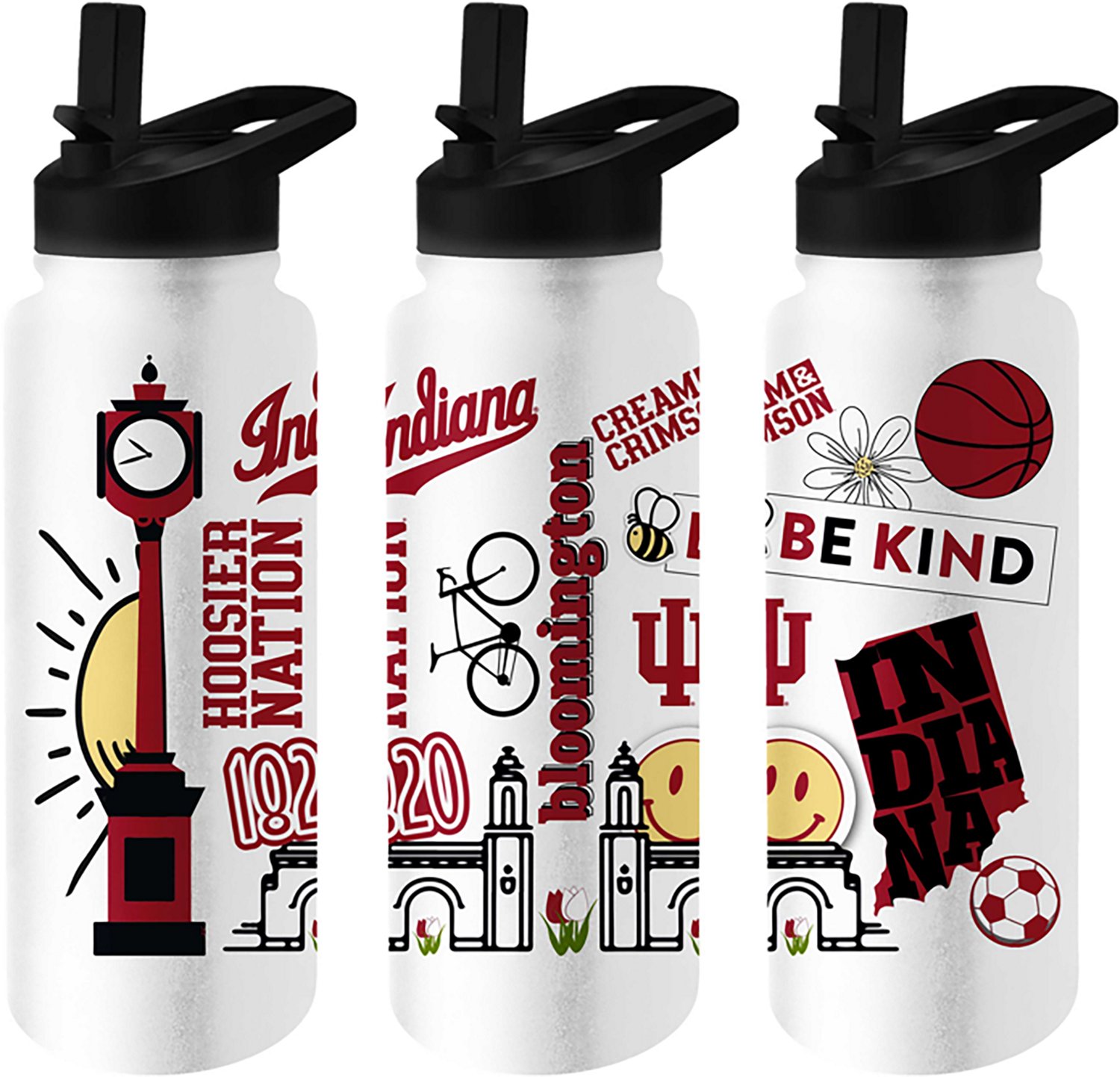 Make it clear that you're a true fan when you sip your drink from the Logo Brands Indiana 34 oz Native Quencher Bottle. The high-quality stainless steel with a powder-coat exterior offers durability, while the double-wall construction with vacuum insulation helps keep your drink cold.