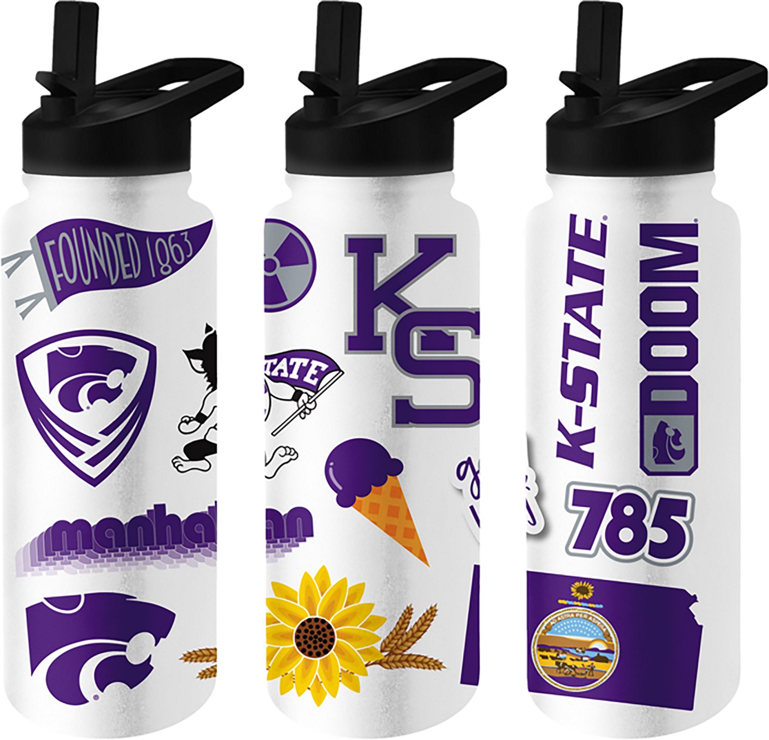 Make it clear that you're a true fan when you sip your drink from the Logo Brands Kansas State 34 oz Native Quencher Bottle. The high-quality stainless steel with a powder-coat exterior offers durability, while the double-wall construction with vacuum insulation helps keep your drink cold.