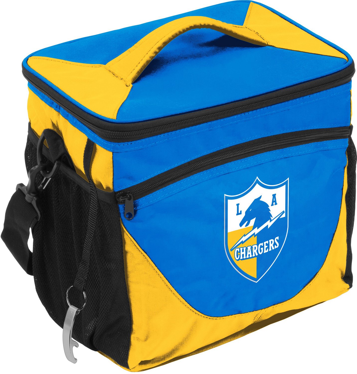Pack food, drinks and more in the Logo Brands Los Angeles Chargers 24 Can Cooler. Great for tailgating, this cooler features several pockets and a durable lining. Team graphics let everyone know you're a loyal fan. Includes a metal bottle opener.