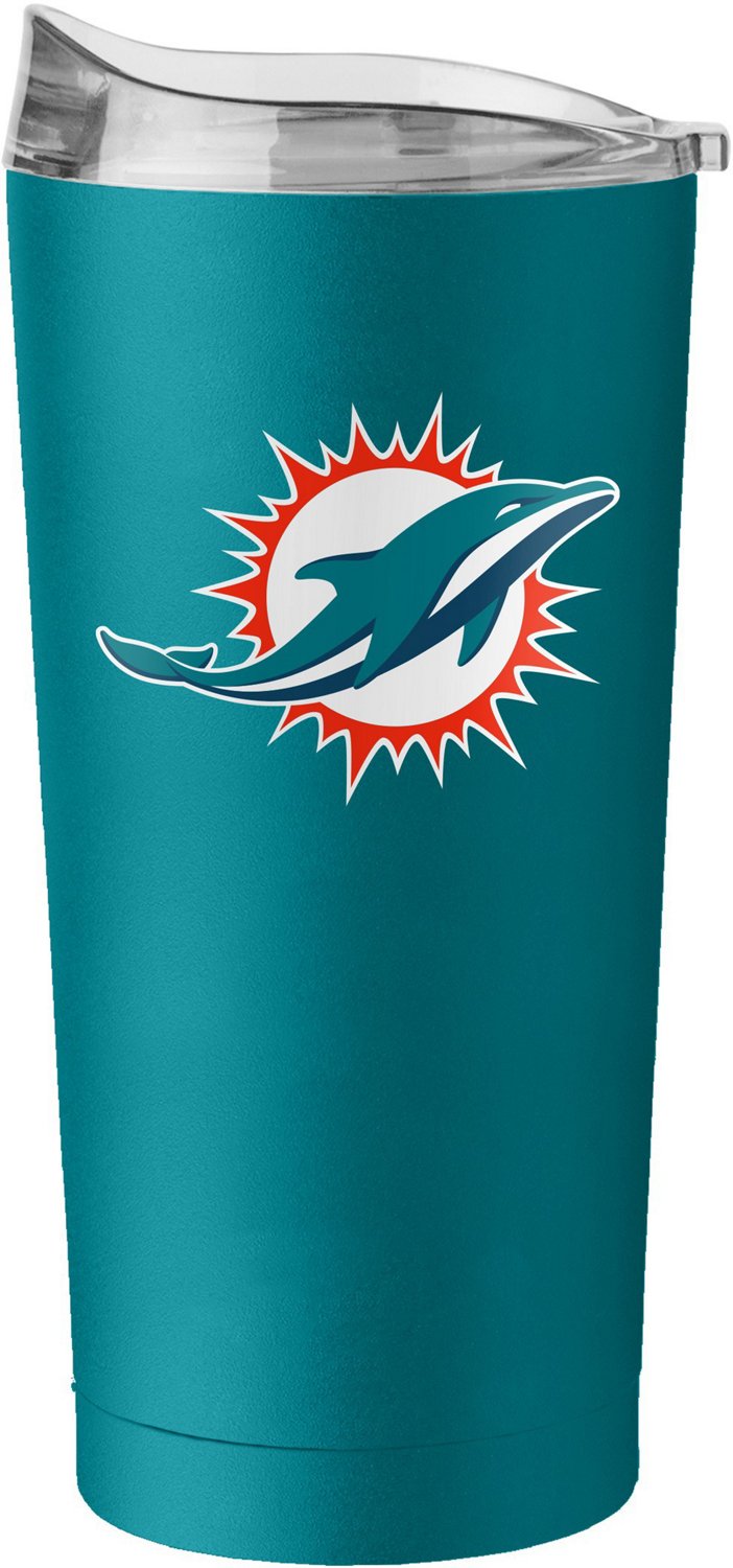 Enjoy a delicious game day beverage in the Logo Brands Miami Dolphins 20oz Flipside Powder Coat Tumbler. The stainless steel walls are vacuum sealed for insulation and protected by a powder coat finish. A high lip slider lid helps prevent spills while team graphics celebrate your favorite pro team.