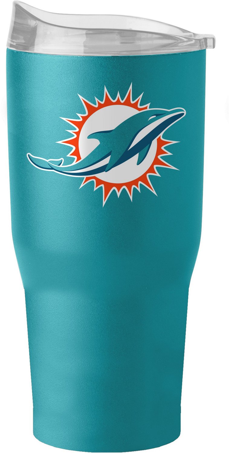 Enjoy a delicious game day beverage in the Logo Brands Miami Dolphins 30oz Flipside Powder Coat Tumbler. The stainless steel walls are vacuum sealed for insulation and protected by a powder coat finish. A high lip slider lid helps prevent spills while team graphics celebrate your favorite pro team.
