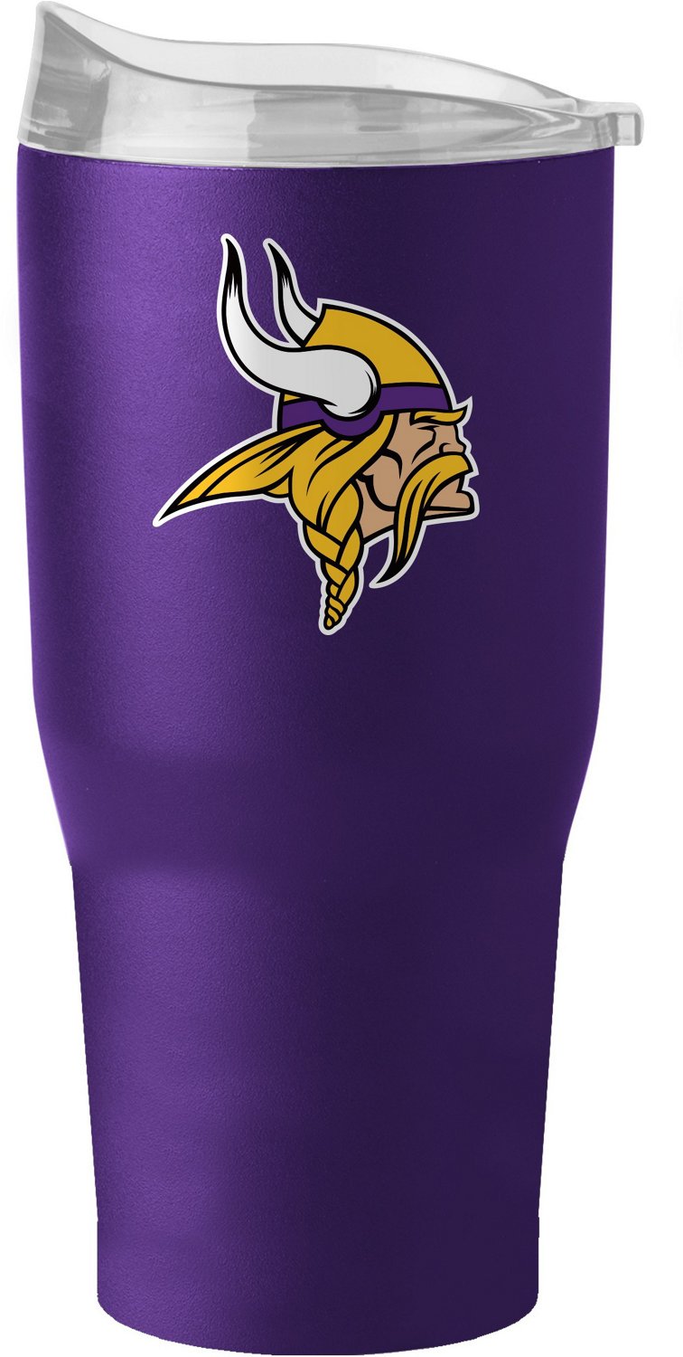 Enjoy a delicious game day beverage in the Logo Brands Minnesota Vikings 30oz Flipside Powder Coat Tumbler. The stainless steel walls are vacuum sealed for insulation and protected by a powder coat finish. A high lip slider lid helps prevent spills while team graphics celebrate your favorite pro team.