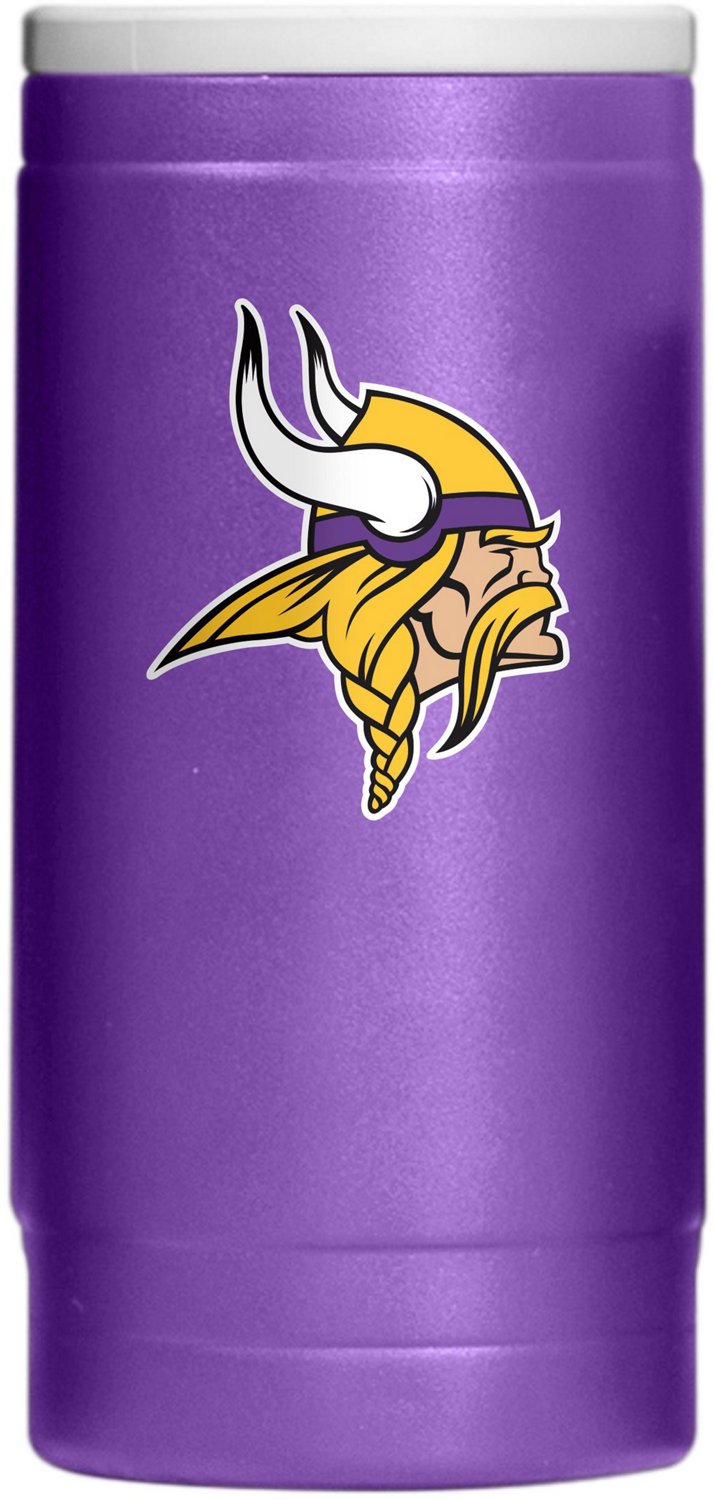 Keep your drinks at the right temperature in Vikings style with the Logo Brands Minnesota Vikings Flip Powder Slim Can Coolie. The double-wall construction keeps the drink at the proper temperature for long periods of time, while the push-down rim keeps the can secure. It can be used as a cocktail tumbler without the rim, and the team design displays your love of the team.