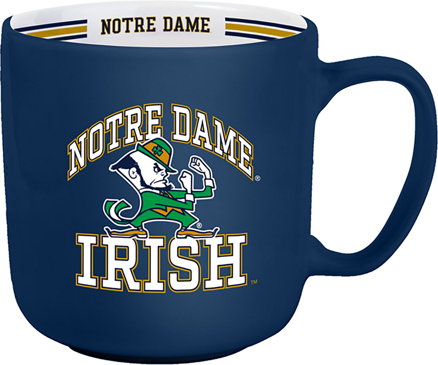 Take a sip of your morning coffee with the Logo Brands University of Notre Dame 15 oz Stripe Mug. This mug boasts a 15 ounce capacity, and it has a team logo that shows off your Fighting Irish pride.