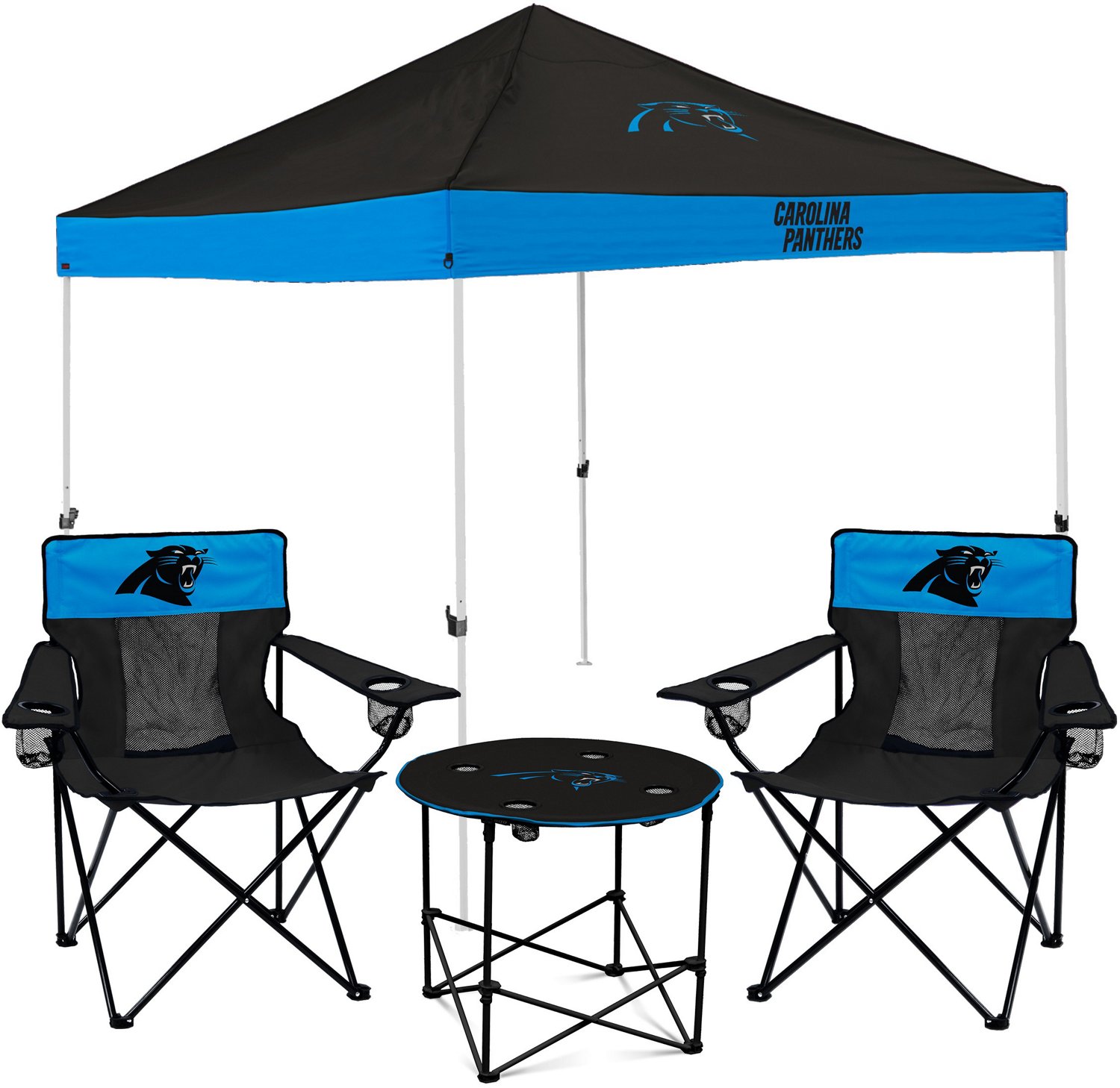 Get ready for game day with the Logo Carolina Panthers Tailgate Bundle. This bundle includes 2 chairs, 1 table and 1 canopy constructed with steel and polyester to withstand wear and tear, while the team decorations let everyone know you're rooting for the Panthers.