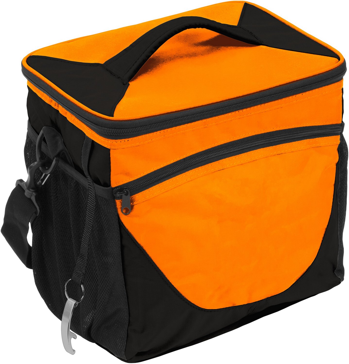 Pack for the next trip with the Logo Chair 24-Can Cooler. The PEVA and polyester material affords durability, while the heat-sealed leak-proof lining holds ice for up to 24 hours. The front zippered pocket and side pockets offer extra storage space, and the shoulder straps and padded handle allow for comfortable carrying.