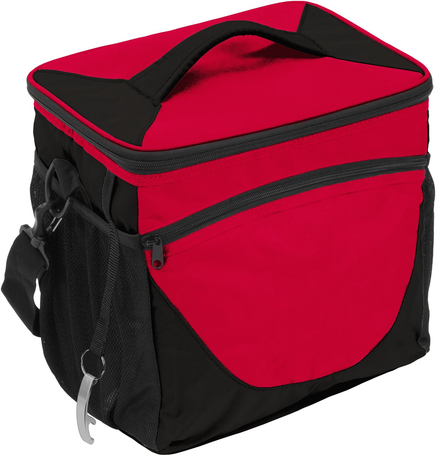 Pack for the next trip with the Logo Chair 24-Can Cooler. The PEVA and polyester material affords durability, while the heat-sealed leak-proof lining holds ice for up to 24 hours. The front zippered pocket and side pockets offer extra storage space, and the shoulder straps and padded handle allow for comfortable carrying.