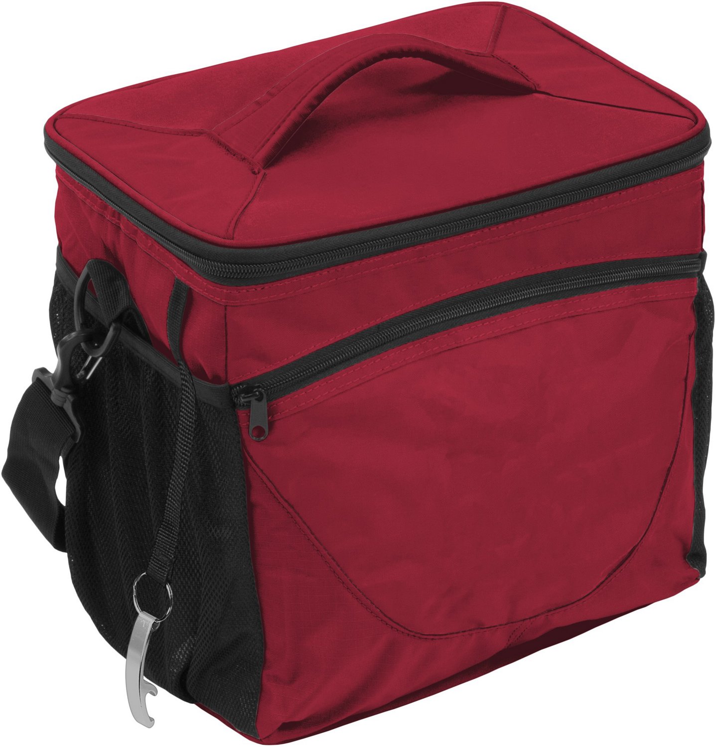 Pack for the next trip with the Logo Chair 24-Can Cooler. The PEVA and polyester material affords durability, while the heat-sealed leak-proof lining holds ice for up to 24 hours. The front zippered pocket and side pockets offer extra storage space, and the shoulder straps and padded handle allow for comfortable carrying.