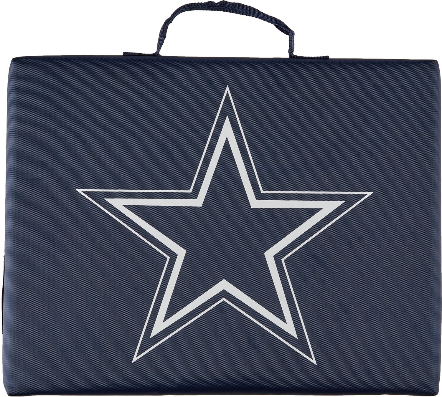 When you're not on your feet cheering for the Cowboys, make sure you've got a comfortable place to sit with the Logo Dallas Cowboys Bleacher Cushion It's made with water-resistant polyester and foam materials and features a screen-printed team graphic for everyone to see. With an attached carry handle and a lightweight design, this cushion is easy to transport to and from the stadium. Find more NFL fan gear at Academy.com.