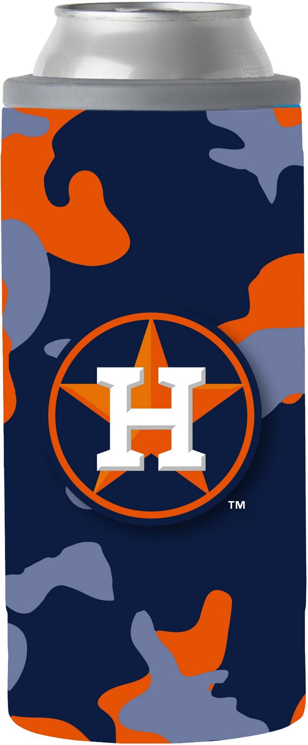 Put your team spirit on display as you enjoy your favorite beverage with the Logo Houston Astros Camo 12 oz Slim Can Coolie. This can holder is designed to hold a slim 12-ounce canned beverage and features a stainless steel, double wall construction to keep your drink cold and refreshing on the go. The Astros-themed details proudly boast your fan pride, while the camo print design adds style to the look.