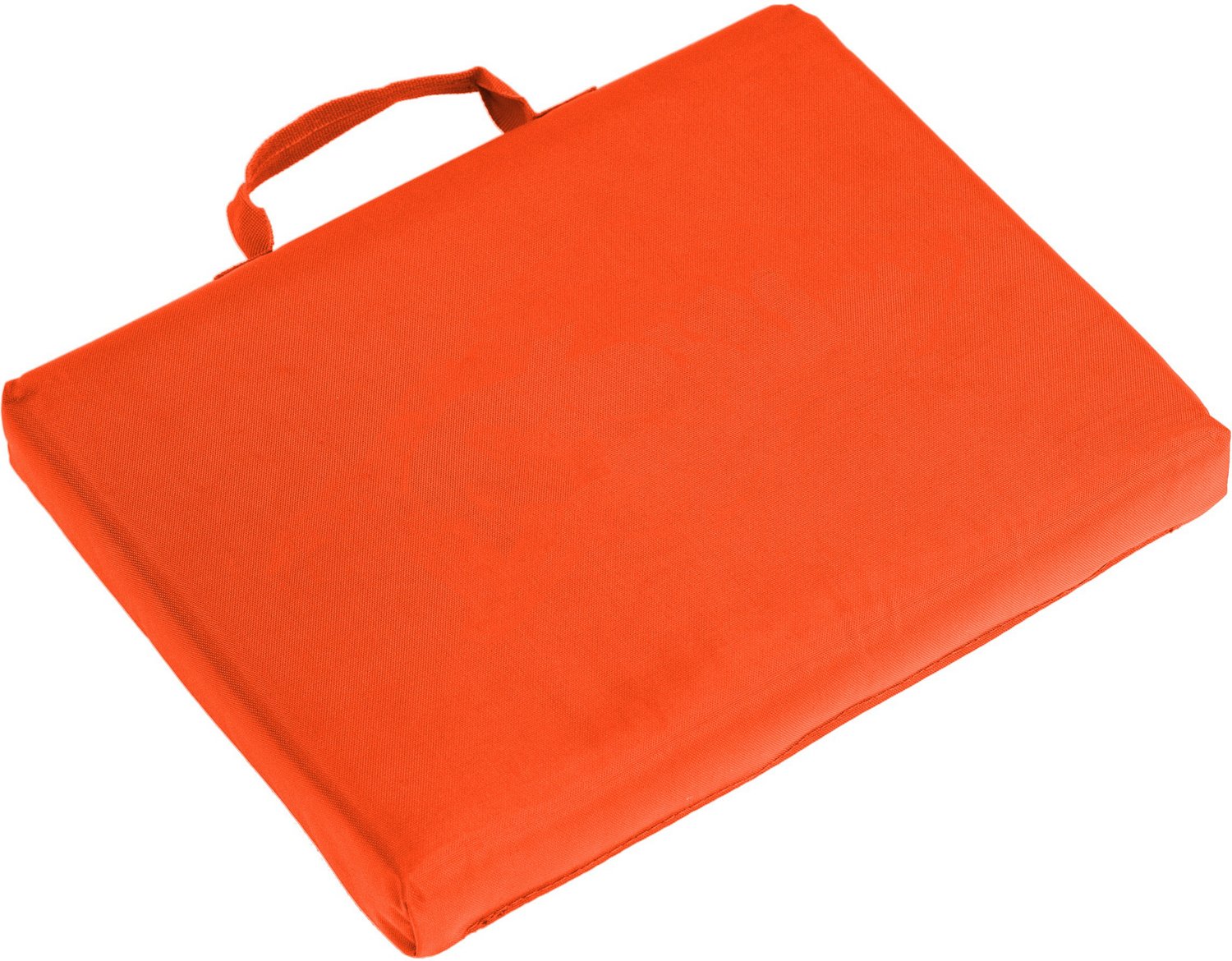 Stay comfortable as you enjoy the game with the Logo Plain Bleacher Cushion. The polyester construction offers durability. The polyurethane pad provides comfortable cushioning to bleacher seating. The carrying handle allows for convenient transport, while the 14-inch x 11-inch dimensions fit standard stadium and bleacher seat requirements.