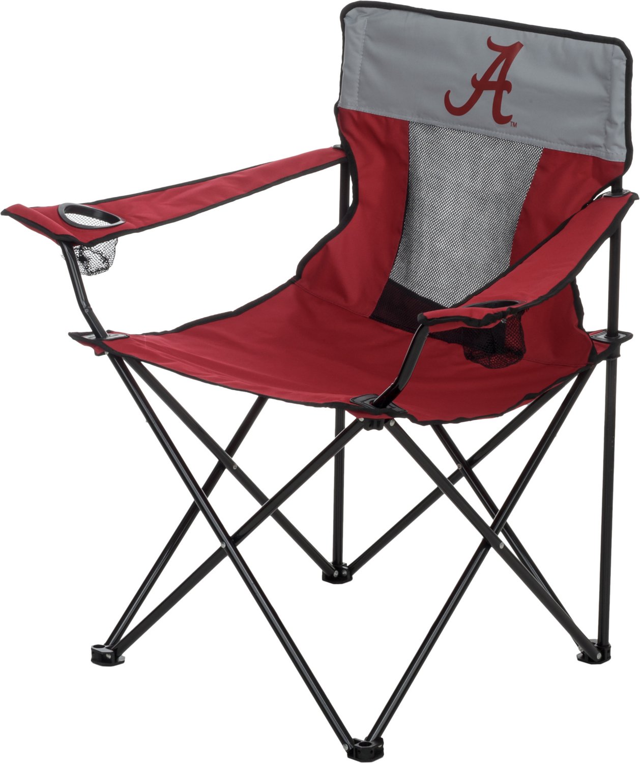 Relaxing at your tailgate is easy with the Logo™ University of Alabama Elite Chair. As you wait for the game to begin, relive your favorite Crimson Tide moments sitting in the cool, team-themed fabric seat, and put a refreshing drink in one of the built-in cup holders to keep on hand while you chat with your crew. When it's time to pack up, simply fold the chair down into the included carrying bag and roll out. Grab a snack and watch the game with more fan gear from Academy.com.