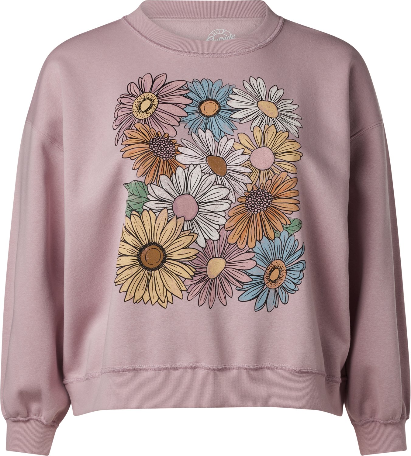 LOL LADIES FLEECE CREW WITH FLOWERS FRONT CHEST GRAPHIC