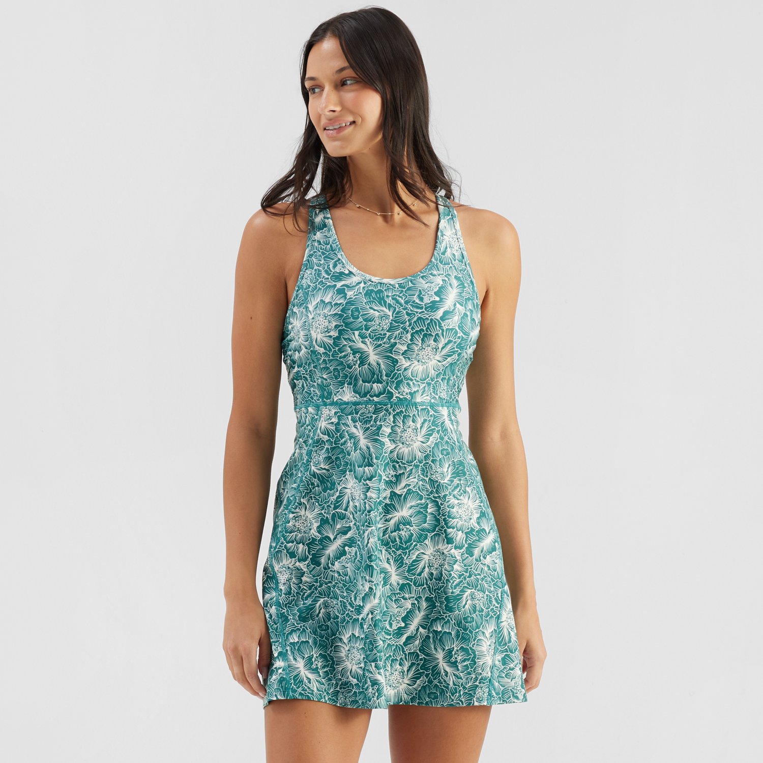 Dress up for the day with the Freely Women's Lola Dress. The polyester and spandex material provides a comfortable feel, while the removable cup pads offer support. The crisscross back detail delivers a stylish touch.