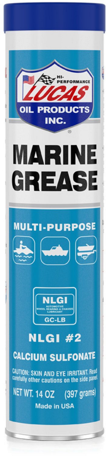 Keep your boats and trailers lubricated and ready to go with the Lucas Oil 14 oz Marine Grease Cartridge. Fortified with unique polymers and anti-wear agents, this multipurpose OBCS marine grease is made for excellent performance, even under extreme conditions. With its high level of water resistance and shock loading protection, this grease has you covered in both saltwater and freshwater applications.