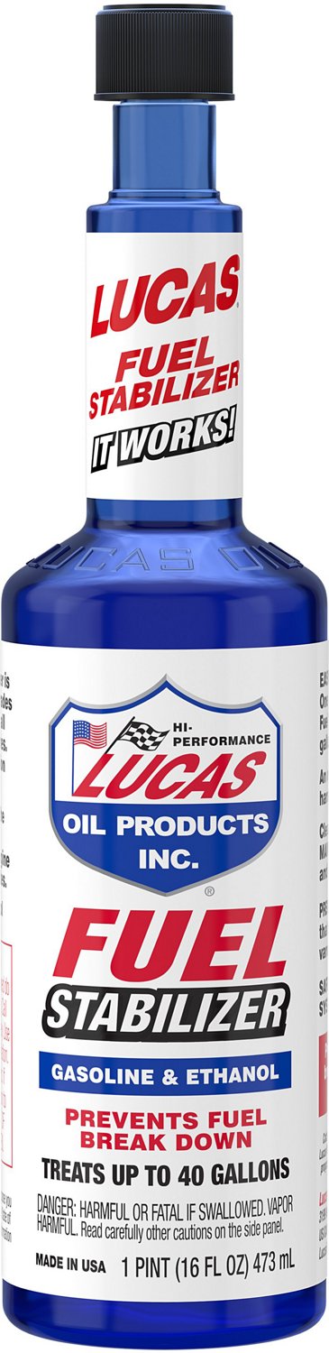 Keep fuel systems running smoothly with help from the Lucas Oil 15 oz Fuel Stabilizer. This stabilizer is formulated to clean, lubricate and maintain fuel pumps, carburetors, fuel injectors and compression rings. The formula prevents fuel break down and does not contain alcohol for safe use in most 2 and 4 cycle engines.