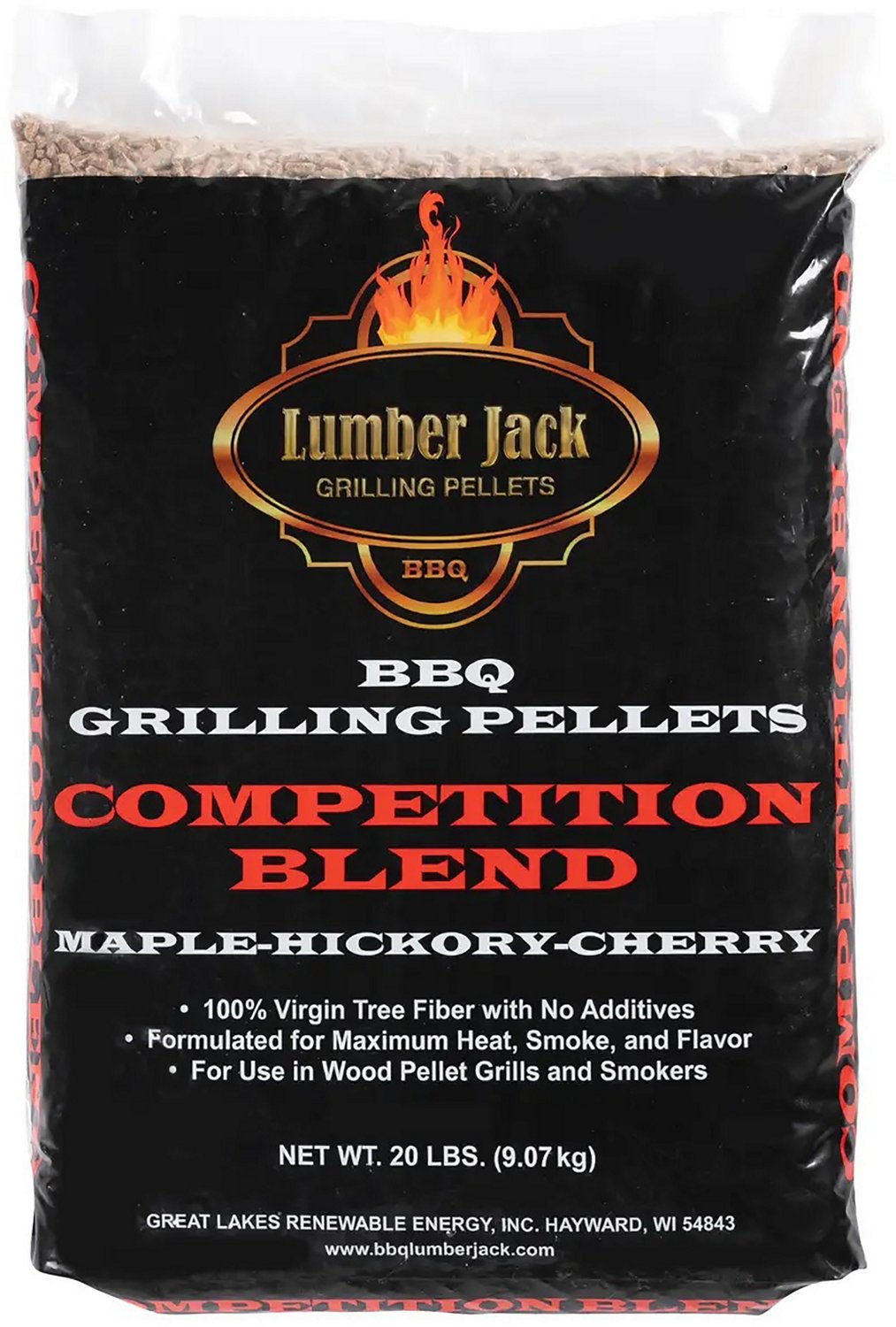 Grill meat, vegetables and more to perfection with the Lumber Jack BBQ Competition Blend Pellets 20lb. The formula is designed to maximize heat and smoke, helping you achieve the delicious flavor you are looking for. The blend of maple, hickory and cherry lends a balanced aroma ideal for a wide variety of meals.