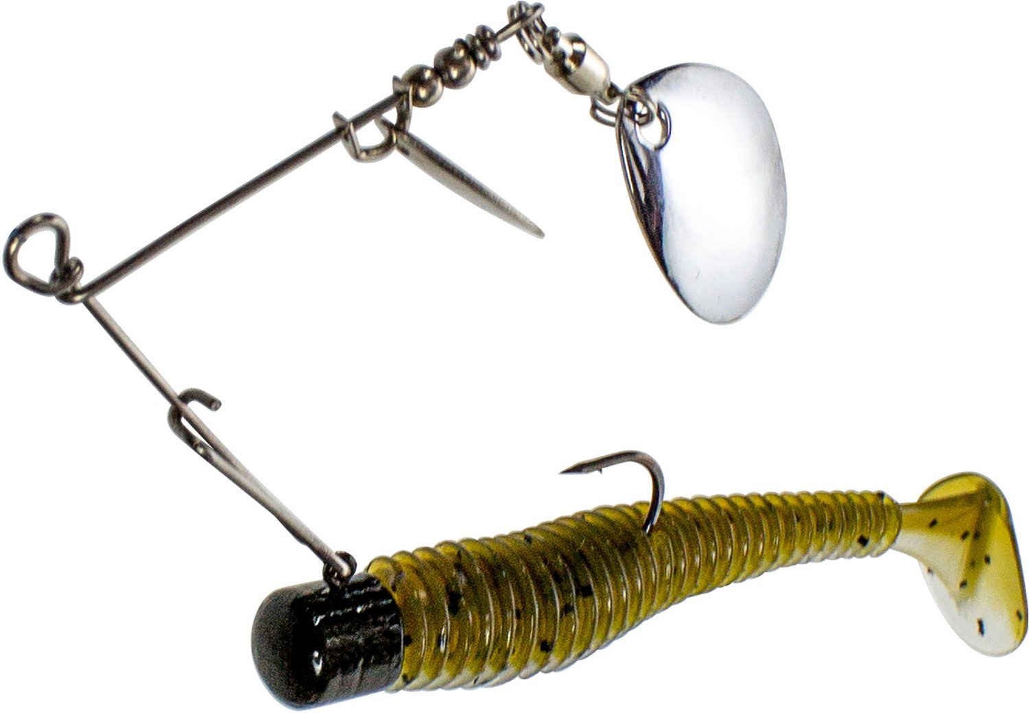 • Includes 1 prerigged Spinner Bait with a finesse-style Mushroom Jig Head and a Finesse-size Swimbait