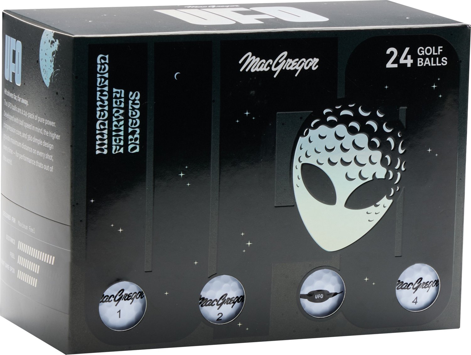 Hit harder and farther with the MacGregor UFO Golf Balls 24-Pack. The 2-piece design delivers reduced spin for maximum flight distance on a strike. They are durable for lasting use.