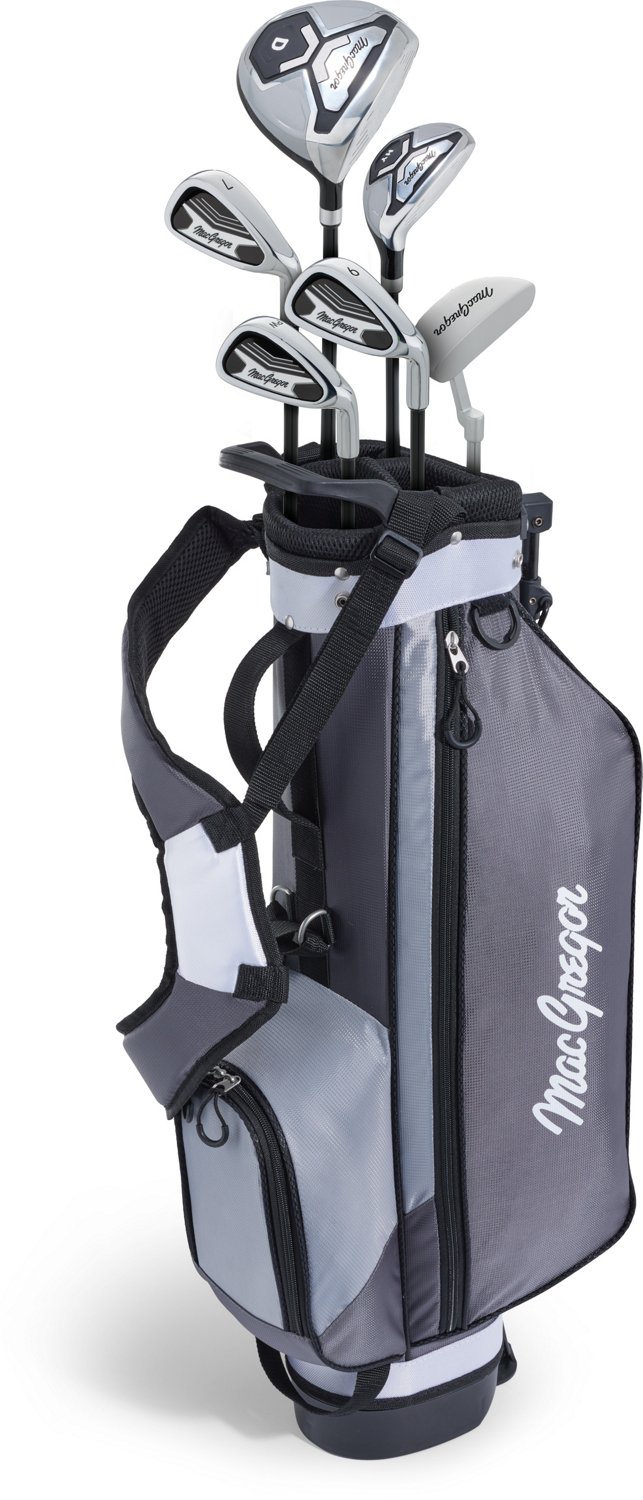 Start learning the game of golf with the MacGregor Golf Youth MCG Large Golf Club Set. The hybrid helps you easily hit from a variety of lies to replace hard-to-hit long irons, and the stainless-steel irons with oversize heads, cavity backs and perimeter weighting provides explosive distance. The matching headcovers keep your driver and hybrid safe as you go from hole to hole, and the 3-pocket bag provides storage space for your golf gear.