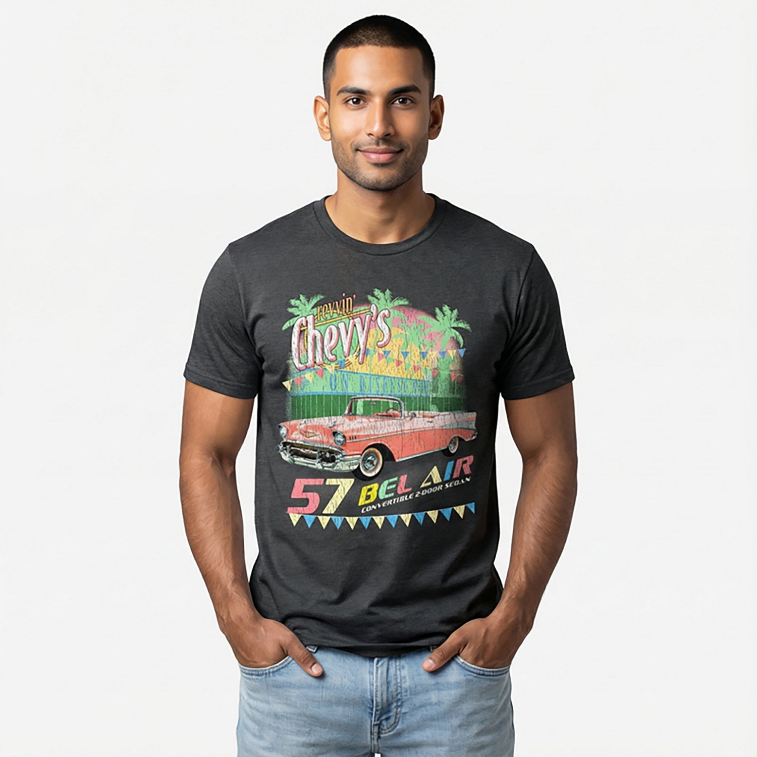 Let everyone know who you are when you wear the Mad Engine General Motors Men's Dealership Short Sleeve T-shirt . The 60% cotton and 40% polyester construction withstands wear and tear while feeling soft, and the design delivers a fun and eye-catching graphic.