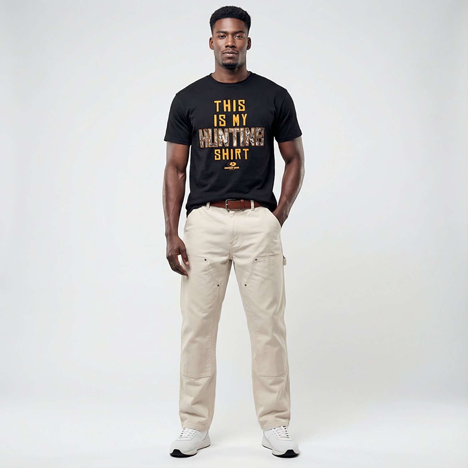 Let everyone know who you are when you wear the Mad Engine Mossy Oak Men's Hunting Shirt Short Sleeve T-shirt. The cotton construction withstands wear and tear while feeling soft, and the design delivers a fun and eye-catching graphic.