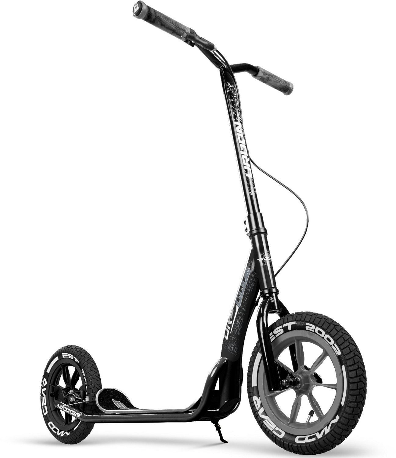 Cruise your neighborhood or commute to school with the Madd Gear Tundra Commuter Scooter. Large air-filled tires and a wide foot platform deliver an ultra-smooth and comfortable ride. Rubber padded hand grips help reduce shock and strain, while a quick-stop hand brake allows easy control.
