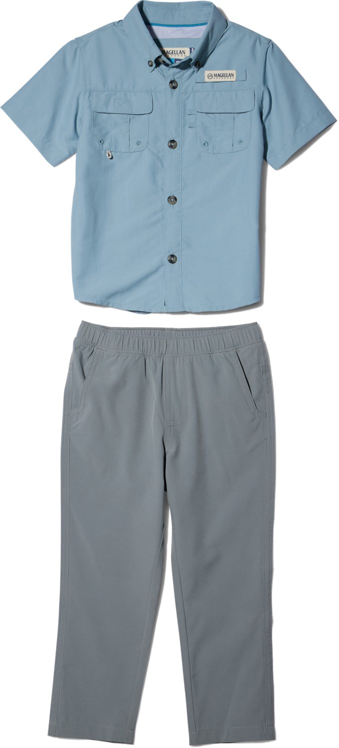 Wear the Magellan Boys' Laguna Madre Short Sleeve Pant Set to stay comfortable and dry during any outing. The moisture wicking properties offer sweat-wicking capability, and the Flex Technology makes it easy to move around.